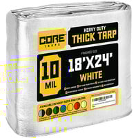 Core Tarps 18' x 24' White Heavy-Duty Weatherproof 10 Mil Poly Tarp with Reinforced Edges