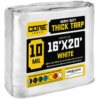 Core Tarps 16' x 20' White Heavy-Duty Weatherproof 10 Mil Poly Tarp with Reinforced Edges