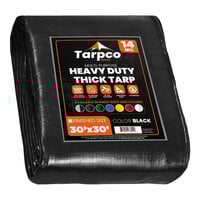 Tarpco Safety 10' x 20' Black Extra Heavy-Duty Weatherproof 14 Mil Poly Tarp with Reinforced Edges