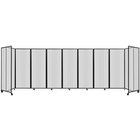 Create socially distanced, private work areas with this Versare 1290903 clear polycarbonate foldable room divider 360 - 25' x 7' 6". This partition provides a simple yet ergonomic solution to dividing your open space. It is built to be both long-lasting and stylish, featuring a lightweight yet durable aluminum frame with cast aluminum corners for reinforcement. The frame accepts hooks (sold separately), allowing you to hang monitors, dry erase boards, or photos. It is a useful tool to help promote social distancing and safe, healthy practices in your establishment. This versatile divider is made with polycarbonate panels. These panels can be easily spray cleaned and provide a measure of translucency, allowing for natural light to shine through them.