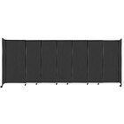 This partition features a strong yet lightweight extruded aluminum frame with cast aluminum corner joints, which sets it apart from heavier steel-frame options. This divider features 7 telescoping panels as well as 2 full-sized end panels fixed at 90 degrees for a total of 9 panels to promote stability. Ideal for busy facilities, the panels are made with a soft, tackable fabric that allows you to pin up signs, notes, or even artwork for ultimate convenience and ease of communication. Plus, the non-marking, low-profile casters make it easy to position the divider in your area. Their low center of gravity reduces noise and increases safety during transport.