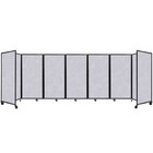 Create private working areas with this Versare 1932204 black SoundSorb folding room divider 360 - 19' 6" x 6'. This partition provides a simple solution to dividing open space in corporate offices, school classrooms, and healthcare settings. The 360-degree hinge design allows for a full range of movement and a variety of arrangements. Arrange this divider in a C-shape, L-shape, straight line, or even stagger the panels to perfectly fit whatever your area requires. The hinges also feature no-pinch seams for added safety during setup. SoundSorb dividers boast an NRC rating of up to 0.60 for enhanced sound dampening and acoustics control. SoundSorb panels boast an eco-friendly production with no wastewater, emissions, or adhesive involved and contain at least 50% post-consumer recycled material. Their colorfast design won't fade or change color for a long-lasting, attractive appearance.
