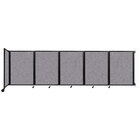 This room divider features a strong and durable aluminum frame. Its non-marking, locking casters make it easy to position in your area. Plus, their low center of gravity reduces noise and increases safety. The panels' charcoal gray fabric material with a fiberglass core even helps to dampen sound to keep your area calm and quiet. This divider features 5 360-degree rotating panels as well as 1 full-sized end panel fixed at 90 degrees for a total of 6 panels to promote stability. You can even put tacks in the fabric to hang signs or notes. Additionally, this divider features a versatile 14' x 4' size so that you can accommodate many different setups. Its wall mountable design also allows you to conveniently and easily anchor the end of the divider with the included parts so that it stays in place. With this room divider, you will have unlimited configuration options!