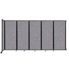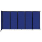 This room divider features a strong and durable aluminum frame. Its non-marking, locking casters make it easy to position in your area. Plus, their low center of gravity reduces noise and increases safety. The panels' black fabric material with a fiberglass core even helps to dampen sound to keep your area calm and quiet. This divider features 5 360-degree rotating panels as well as 1 full-sized end panel fixed at 90 degrees for a total of 6 panels to promote stability. You can even put tacks in the fabric to hang signs or notes. Additionally, this divider features a versatile 14' x 6' 10" size so that you can accommodate many different setups. Its wall mountable design also allows you to conveniently and easily anchor the end of the divider with the included parts so that it stays in place. With this room divider, you will have unlimited configuration options!