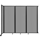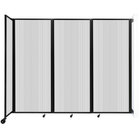 This room divider features a strong and durable aluminum frame. Its non-marking, locking casters make it easy to position in your area. Plus, their low center of gravity reduces noise and increases safety. The panels' clear poly polycarbonate material is easy to clean for a pristine appearance. This divider features 3 360-degree rotating panels as well as 1 full-sized end panel fixed at 90 degrees for a total of 4 panels to promote stability. Additionally, this divider features a versatile 8' 6" x 6' 10" size so that you can accommodate many different setups. Its wall mountable design also allows you to conveniently and easily anchor the end of the divider with the included parts so that it stays in place. With this room divider, you will have unlimited configuration options!
