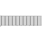 This room divider features a strong and durable aluminum frame. Its non-marking, locking casters make it easy to position in your area. Plus, their low center of gravity reduces noise and increases safety. The panels' clear poly polycarbonate material is easy to clean for a pristine appearance. This divider features 11 360-degree rotating panels as well as 1 full-sized end panel fixed at 90 degrees for a total of 12 panels to promote stability. Additionally, this divider features a versatile 30' 6" x 7' 6" size so that you can accommodate many different setups. Its wall mountable design also allows you to conveniently and easily anchor the end of the divider with the included parts so that it stays in place. With this room divider, you will have unlimited configuration options!