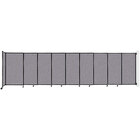 Create private work areas with the Versare 7460908 cloud gray StraightWall wall-mounted sliding room divider. With this room divider, you can accommodate a variety of setups in your warehouse, classroom, gymnasium, or office! It features telescoping hinges to ensure it always stays in a straight line, no matter how far you extend it. The hinges are also smooth and sturdy for convenient and easy setup. The nine panels' cloud gray fabric material with a fiberglass core even helps to dampen sound to keep your area calm and quiet. Additionally, this divider features a versatile 19" x 9" x 5' size so that you can accommodate many different setups.