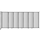 Create private work areas with the Versare 7582707 light gray poly StraightWall wall-mounted sliding room divider. With this room divider, you can accommodate a variety of setups in your warehouse, classroom, gymnasium, or office! It features telescoping hinges to ensure it always stays in a straight line, no matter how far you extend it. The hinges are also smooth and sturdy for convenient and easy setup. The seven panels' light gray polycarbonate material is easy to clean for a pristine appearance. Additionally, this divider features a versatile 15' 6" x 6' 10" size so that you can accommodate many different setups.
