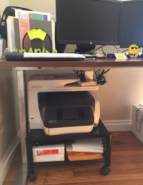 Elevate your office machine to a comfortable level and keep supplies within reach with this Vertiflex VF52005 21 1/2" x 17 7/8" x 11 1/2" matte gray one-shelf underdesk machine stand. It features a strong steel and wire construction that's durable enough to hold printers, fax machines, or personal copiers. Placing them on top of this machine stand allows staff to easily access the machine from directly under their desktop, so it can be kept nearby without taking up precious desktop space.