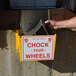 This unit's mounting holes make it easy to install. It includes a sticker that reads "the law says chock your wheels", promoting greater visibility and safety. Plus, the unit's smooth design allows for quick, easy cleaning. Conveniently store your wheel chocks with this Vestil wheel chock holder!