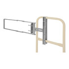Enhance safety in your workplace with the Vestil 24"-40" gray galvanized steel self-closing gate. This gate is a versatile addition to your safety railings (sold separately), allowing you to extend your current gate by 24" to 40". It can be easily mounted from either the left or right side using the included hardware, providing flexibility in installation. Designed to mount to horizontal rails up to 2" in diameter, this gate is perfect for use on rails spaced between 10" and 21" apart, offering a secure barrier for various applications. This gate meets OSHA compliance standards, helping to ensure that your workplace maintains the highest safety standards.
