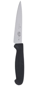 This is an excellent knife, especially for the price. It feels good in my hand, being the perfect weight. The textured plastic grip makes it easy to hold even with wet hands. I would highly recommend it to anybody wanting a knife for home use or for kitchens where the cook won't be bringing their own knives.