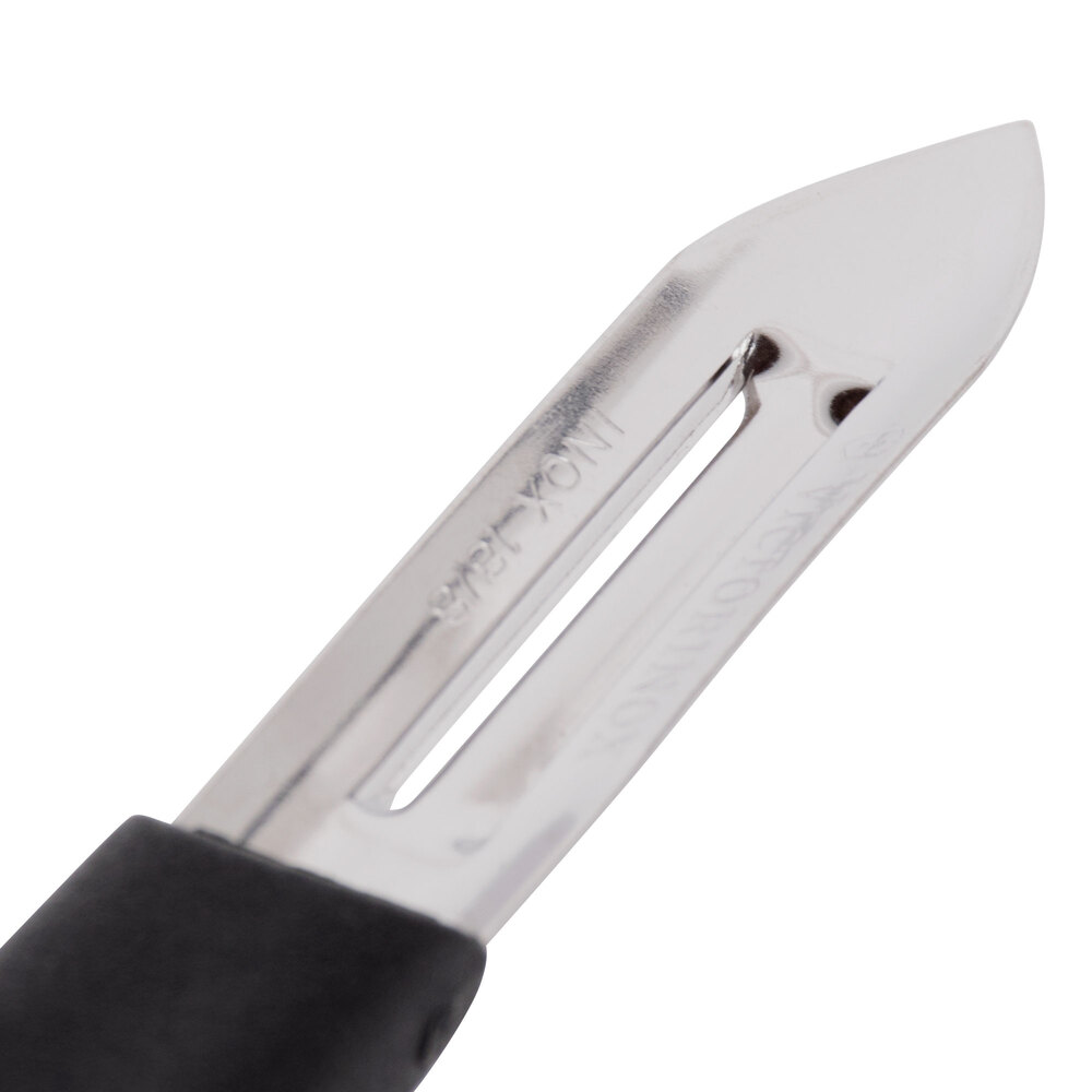 I bought this peeler because of the name, it usually means quality except in this case. Every thing I peel with this peeler gets stuck in the blades. I have peeled carrots, cucumbers potatoes, sweet potatoes and all kinds of other tubers and vegetable and I get the same result the peel get clogs in the blades and it is hard to clean.