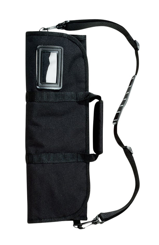 Made from black polyester, the tri-fold knife roll is a great solution for packing up your knives in one convenient place. It holds up to 8 knives, 12" in length, and features a custom spot for each type included in this set.
