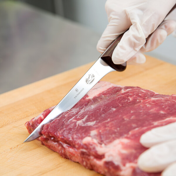 Ensure fast and efficient meal prep in your commercial kitchen with a Victorinox boning knife! Victorinox products last up to 60% longer than typical knives, so you can count on the durability of this knife. Plus, the handle's contours ensure that the knife will fit comfortably in your hand as you tackle daily food preparation tasks. Whether you are quickly cutting through red meat or preparing poultry, this knife will get the job done.