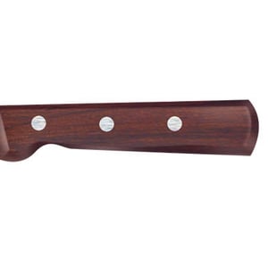 This Victorinox 47039 8" curved breaking knife with wood handle is the optimal tool for trimming fat and breaking down large pieces of meat. Its curved design gives the perfect leverage against skin, bones, and cartilage, and easily trims unwanted fat for precise and lean cuts. The high-carbon blade is made of stainless steel, making it resistant to discoloration and corrosion. The wood handle provides an elegant look and is contoured to fit comfortably in your hand. This knife is the perfect tool for any busy kitchen!
