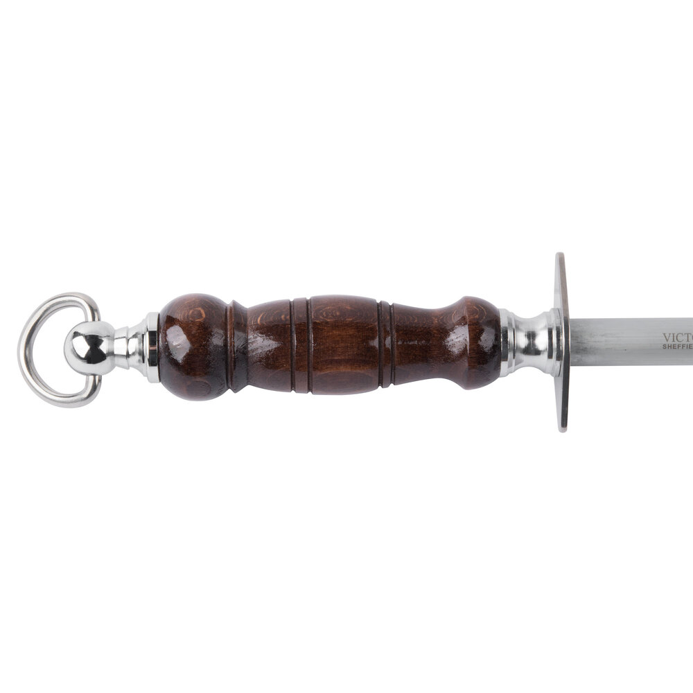 Avoid cutting mishaps with this sharpening steel and get your restaurant, hotel kitchen, or butcher shop working at peak efficiency and safety so you can produce delicious food day-in and day-out! With just a few simple strokes, this Victorinox sharpening steel will have your knives back in great condition to use in your busy kitchen. To avoid dirt build up, wash this steel regularly in hot sudsy water, drying immediately.