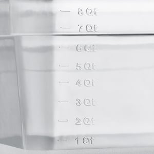 With capacity indicators along the sides, this food pan offers an easy way to keep track of inventory management, and the molded-in, standard and metric graduations are ideal for accurate measurements.