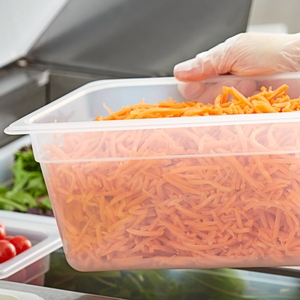 We use these food pans to store our waffle cones and bowls. They are a good size so that we can stack the bowls and be able to make enough so we don't run out too quickly. As they are clear, customers can also see that we have them in stock without having to ask!
