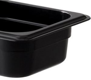 Add versatility to your kitchen with the help of this Vigor 1/6 size black polycarbonate food pan. Made of durable polycarbonate, this pan can be added to your refrigerated prep tables or serve as a loose storage bin on your wire shelving. It's a versatile addition to your kitchen because it can be used to prep, store, transport, and serve food items. You can even use it in your steam table or at your salad bar!