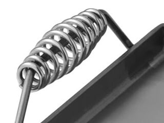 The griddle’s coil handle design is ergonomic and minimizes heat to aid in transport. Though the handle’s design minimizes heat, we recommend using an oven mitt or potholder when the griddle is in use.