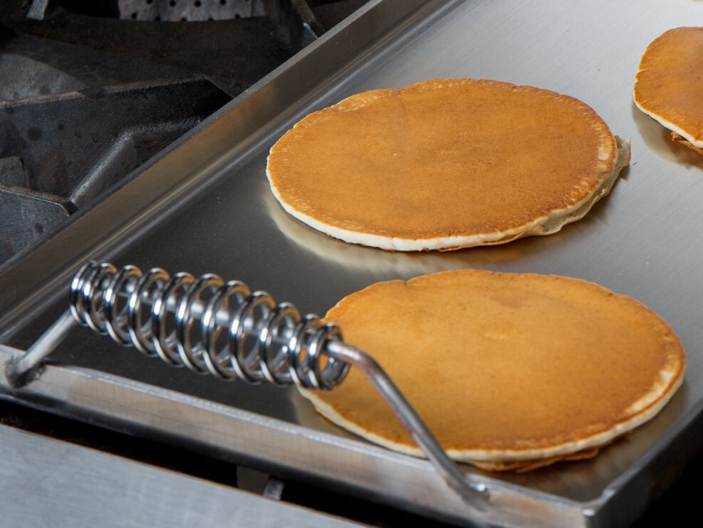 This portable steel griddle allows you to easily modify your existing range so that it cannot only be used for boiling, sautéing, and simmering, but can also be used to make pancakes, burgers, eggs, and other dishes. It sits atop 2 burners and can be quickly removed when not in use to free up those burners as needed.