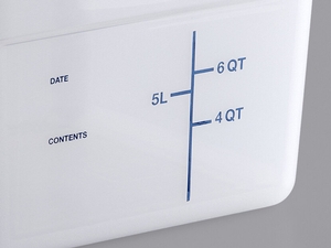 When paired with the included bright blue polypropylene lid, it keeps food fresher, longer, than when covered with traditional foil or plastic wrap. It also allows you to easily identify and track the date your food product was made, thanks to the convenient, reusable "date" indicator at the bottom of the container. Plus, the lid provides a safe, secure seal to prevent outside contaminants from getting in, and messes from getting out. The container and lid are able to withstand temperatures from -32 to 160 degrees Fahrenheit, making it perfect for restaurants, caterers, delis, and cafes.