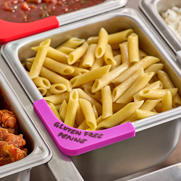 This label works with stainless steel and plastic food pans of every size. Designed to easily slip onto the corner of a food pan, it helps to quickly distinguish stored ingredients. This label keeps ingredients organized while also minimizing unnecessary contact and ensuring that the right ingredients are being used. It also helps prevent cross-contamination and maintain food safety standards.