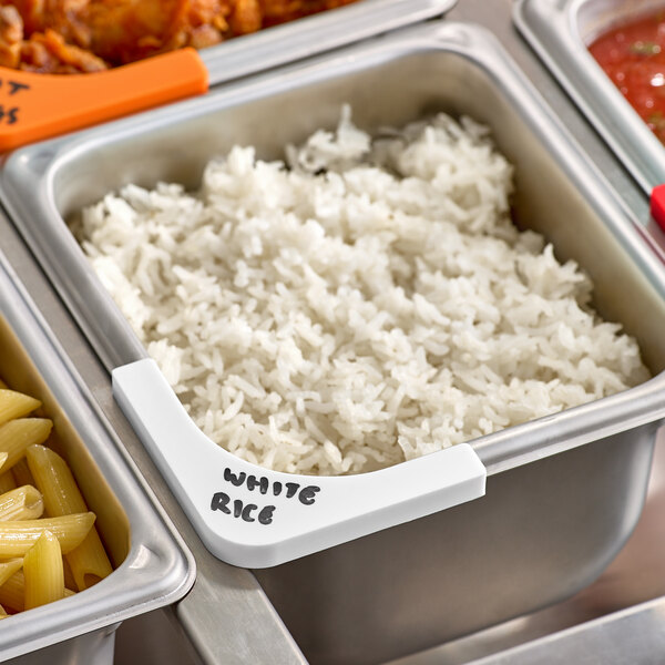 This label works with stainless steel and plastic food pans of every size. Designed to easily slip onto the corner of a food pan, it helps to quickly distinguish stored ingredients. This label keeps ingredients organized while also minimizing unnecessary contact and ensuring that the right ingredients are being used. It also helps prevent cross-contamination and maintain food safety standards.