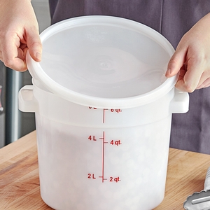 This lid's polypropylene design gives it the strength and affordability you need in your commercial kitchen, making it perfect for restaurants, caterers, delis, and cafes. Plus, it will offer a safe, secure seal to prevent outside contaminants from getting in and messes from getting out. To ensure a proper seal, wash the lid in warm water or run under hot water. The heat will cause the seal to be more flexible for a much easier fit. It withstands temperatures up to 180 degrees Fahrenheit.