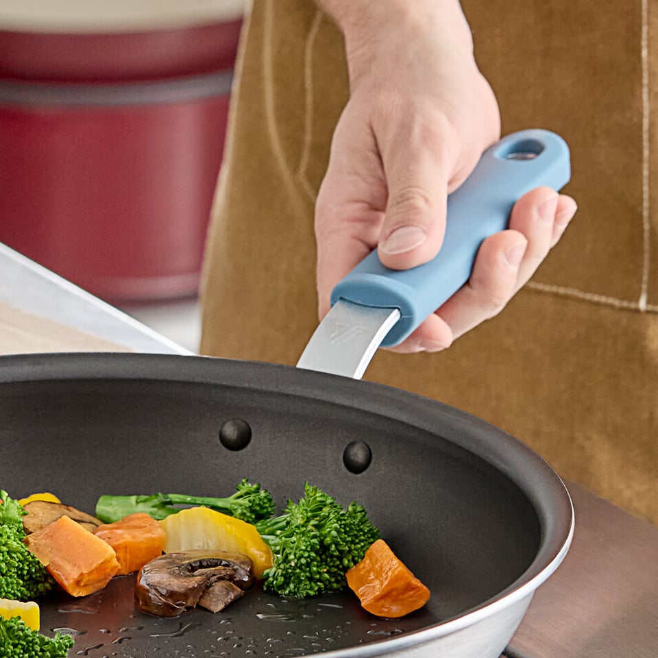 The ergonomic, plated handle design offers comfort and ensures a safe and secure grip during use. It has a hanging hole that allows for easy hanging storage in your busy kitchen. Additionally, it fits right into the pan's oven-safe silicone grip that can stand up to 450 degrees Fahrenheit of continuous use and up to 600 degrees Fahrenheit of sporadic use.