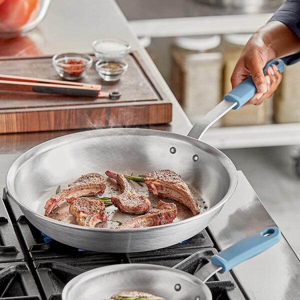 The curved side walls of the pan make it easy to transfer food, while the natural finish allows for superior browning, searing, and frying of your establishment's favorite foods.