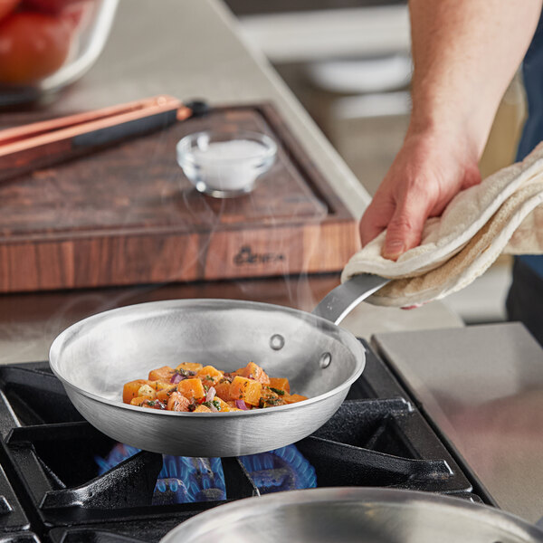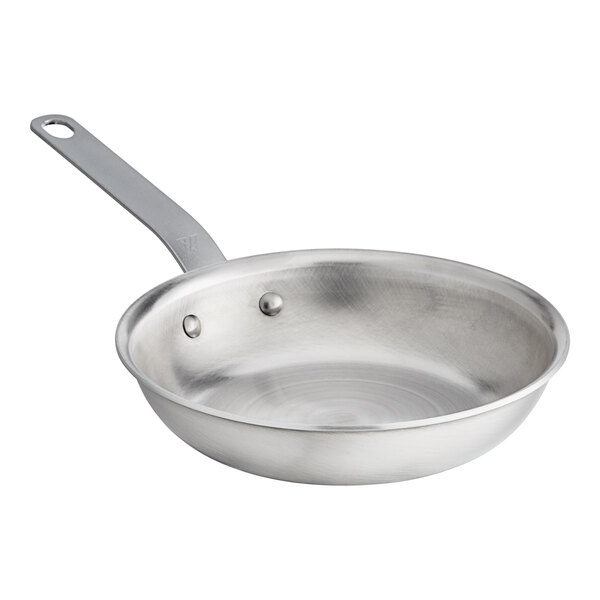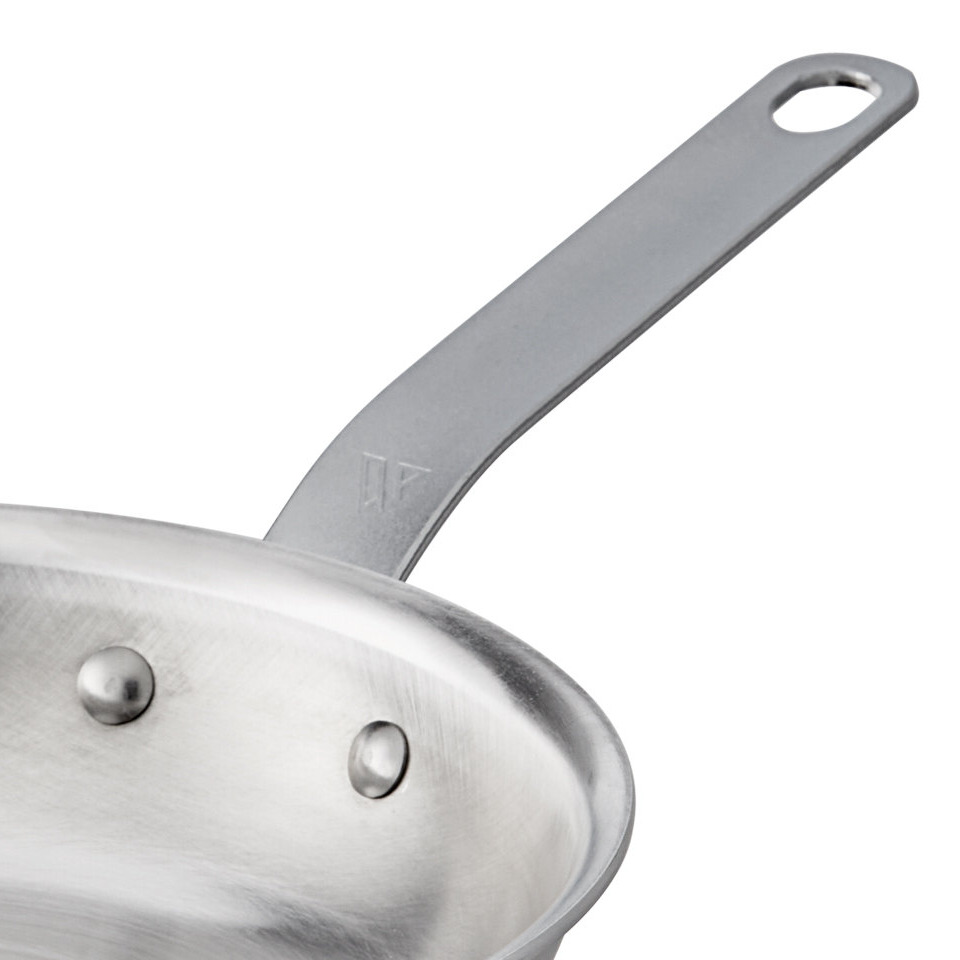 The curved side walls of the pan make it easy to transfer food, while the natural finish allows for superior browning, searing, and frying of your establishment's favorite foods.