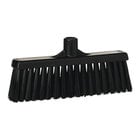 Keep your floor pristine with this Vikan 31669 12 3/16" black straight lobby broom head with unflagged bristles. Its 12 3/16" length is the perfect size to sweep under tables and between machines. It features medium stiffness bristles and a straight neck, making it ideal for removing dust, paper, and food particles. It is recommended not to store this unit below freezing temperatures. This unit is made with polypropylene bristles and a polyester block.