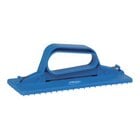 Maintain hygiene in your establishment with this Vikan white handheld scrub pad holder. This pad holder features a durable polypropylene construction, ensuring long-lasting use. It's designed to be used with cleaning pads (sold separately). The cleaning pads easily remove greasy dirt on smooth surfaces such as PVS walls and stainless steel surfaces, and it features an ergonomic handle.