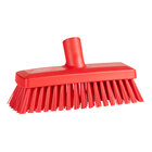 Easily maintain hygiene in your establishment with this Vikan red wall / deck scrub head. This brush features a durable polypropylene construction with stiff polyester bristles, ensuring long-lasting use. The compact brush comes with angled bristles for thorough cleaning. It can be used with any Vikan handle (sold separately).