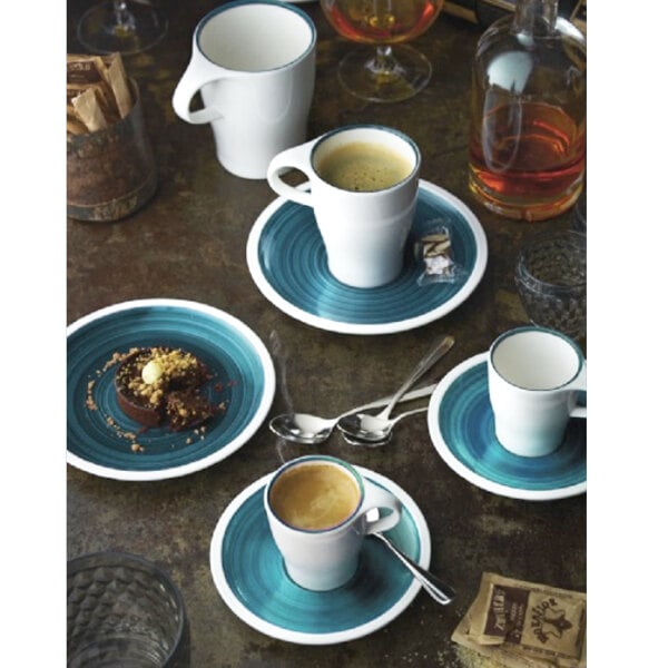 Bring an elegant and upscale look to your establishment with this Villeroy & Boch 16-4068-1280 Artesano Ocean 6 11/16" pacific green porcelain saucer. Featuring a distinctive, hand painted pacific green color, this saucer is a professional, yet bold serving solution for your restaurant, hotel, or country club dining room. Add an Artesano Ocean cup (sold separately) to enhance the presentation. Its simple silhouette contrasts its colored surface, making it the focal point in any dining area. Serve it alone, or pair this piece with other colors and shapes from the Artesano Ocean collection for an attractive and professional presentation!