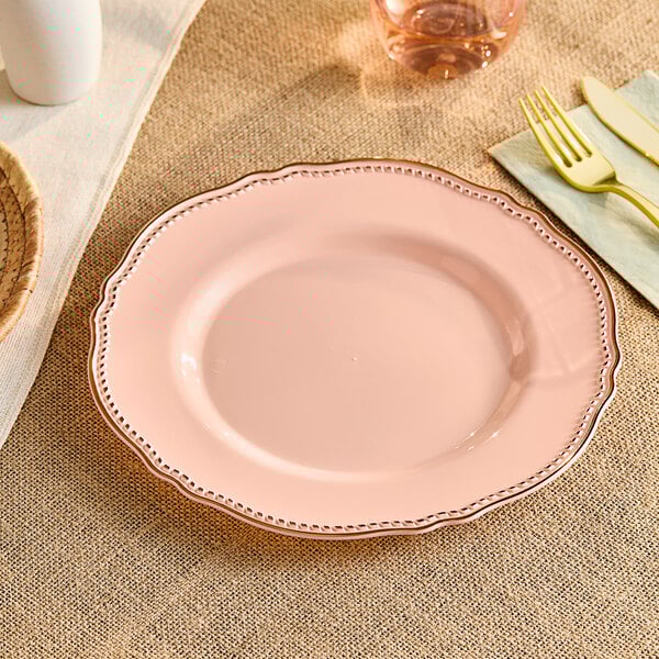 Featuring a timeless aesthetic, this plate offers an elegant backdrop for your culinary creations that is sure to impress guests. The beautiful blush color adds an essence of luxury to any table setting, making it perfect for weddings, banquets, and upscale events.