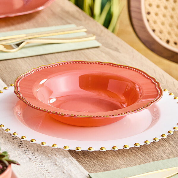 Add a touch of sophistication to your catered event with this Visions Heirloom 10 oz. terra cotta round plastic bowl with gold vintage rim.