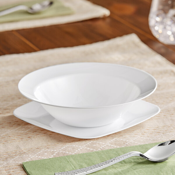 Featuring a contemporary aesthetic, this bowl offers an elegant backdrop for your culinary creations that is sure to impress guests. The classic white color adds a touch of luxury to any table setting, making it perfect for weddings, banquets, and upscale events.