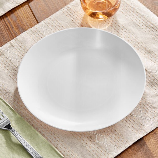 Great for dinner entrees, this 10" plate is perfect for showcasing your culinary creations. Plus, this plastic coupe plate provides an economical alternative to traditional porcelain or china, allowing you to achieve a high-end look without the added costs.