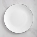 Visions Coupe Dynasty 10" White Round Plastic Plate with Silver Band - 12/Sample