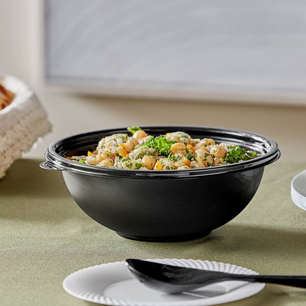 Pair this bowl with a lid (sold separately) to either send food home with guests or restock grab-and-go buffets with product. The quick release tab makes removing the lid a simple, no-hassle experience. With a 32 oz. capacity, you'll be able to store cold foods like salads, sides, or pastas. It is only recommended to use this bowl with cold food.