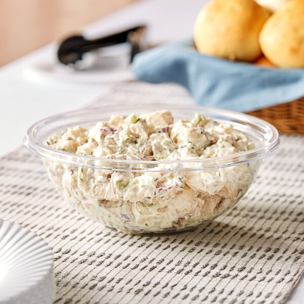 Pair this bowl with a lid (sold separately) to either send food home with guests or restock grab-and-go buffets with product. The quick release tab makes removing the lid a simple, no-hassle experience. With a 32 oz. capacity, you'll be able to store cold foods like salads, sides, or pastas. It is only recommended to use this bowl with cold food.
