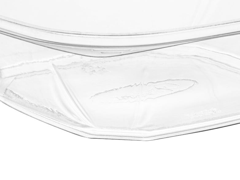 This bowl is made with sturdy PET construction. With a clear design, guests will be able to see the contents in the bowl from all angles.