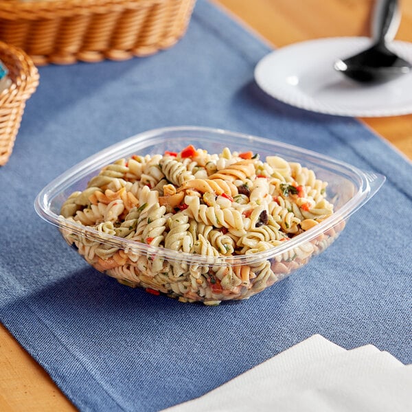 Pair this bowl with a lid (sold separately) to either send food home with guests or restock grab-and-go buffets with product. The quick-release tab makes removing the lid a simple, no-hassle experience. With a 32 oz. capacity, you'll be able to store cold foods like salads, sides, or pastas. It is only recommended to use this bowl with cold food.