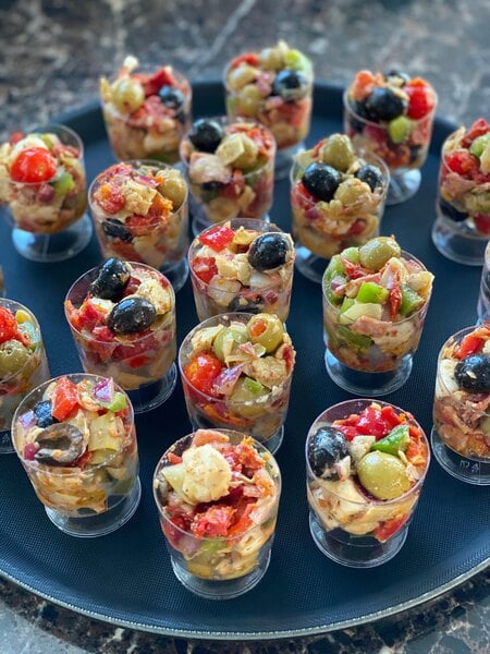 Small wine glasses that we use for samples. We use these for drinks and even frosting samples. This ten pack of plastic wine glasses are affordable but good quality.