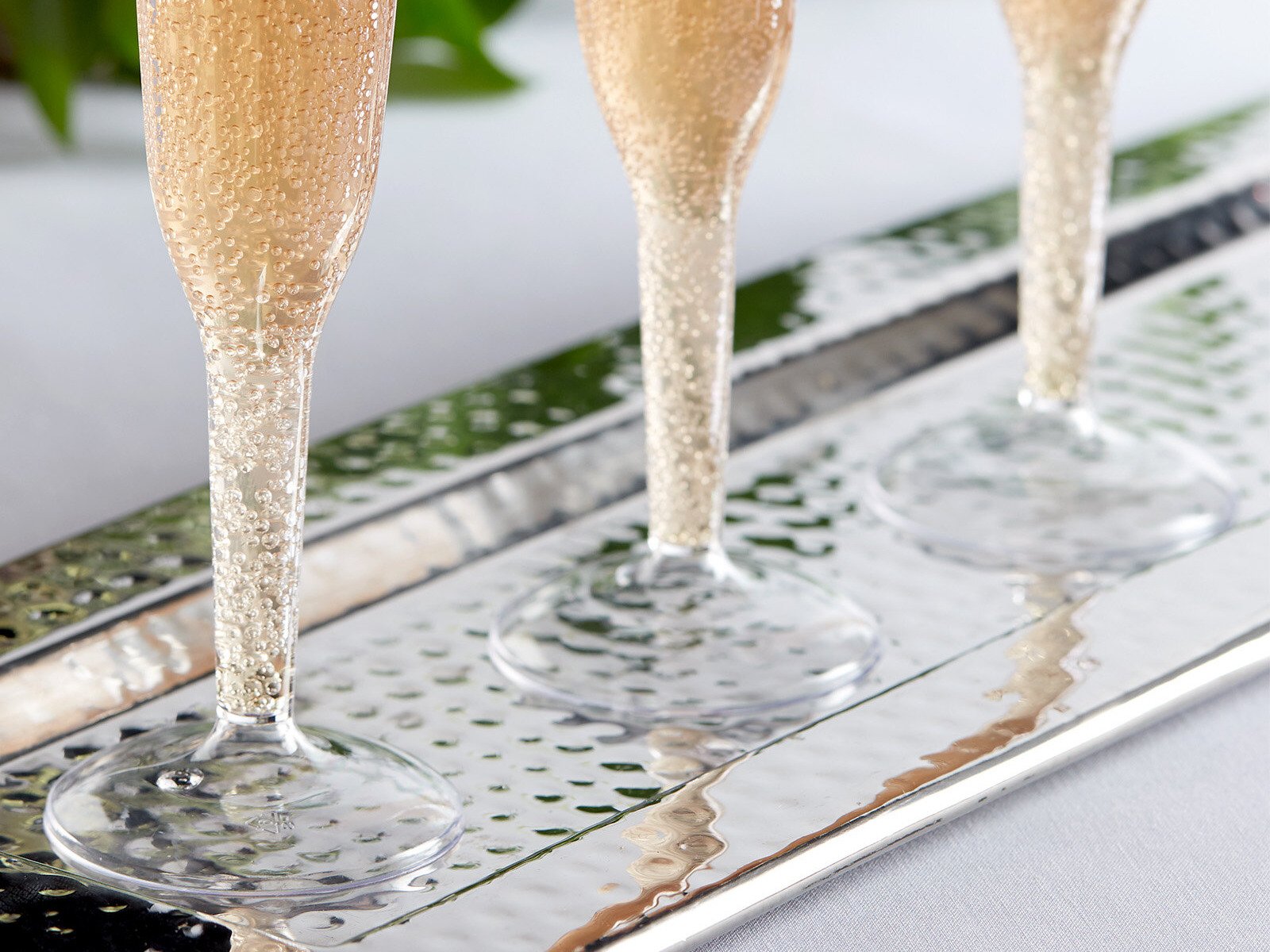 Very durable, affordable, and convenient. I loved that these are 1 piece and I didn’t have to worry about renting real champagne flutes for my wedding.