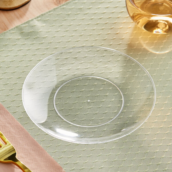 Featuring a contemporary aesthetic, this plate offers an elegant backdrop for your culinary creations that is sure to impress guests. The classic clear color adds a touch of luxury to any table setting, making it perfect for weddings, banquets, and upscale events.