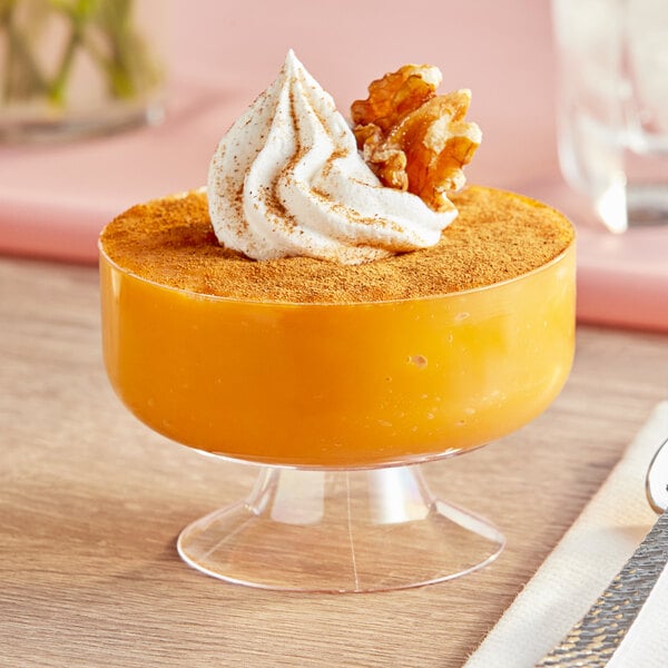 This dessert cup has a petite 6 oz. size that’s perfect for small servings of ice cream, frozen yogurt, pudding, and parfaits. It's also ideal for serving sides like mashed potatoes or for appetizers like shrimp cocktail.